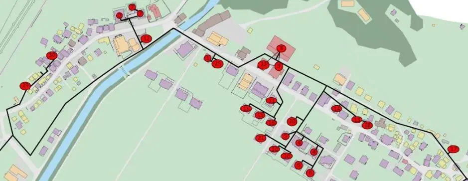 Hier wurde ein neuartiges System gewählt: ein Verteilernetz leitet das Wasser zu den Wärmepumpen von jedem Nutzer, ein sogenantes Anergienetz. Diese dezentrale Warmwassernutzung weist für die einzelnen Wohnbauten ausgezeichnete Jahresnutzungszahlen aus.